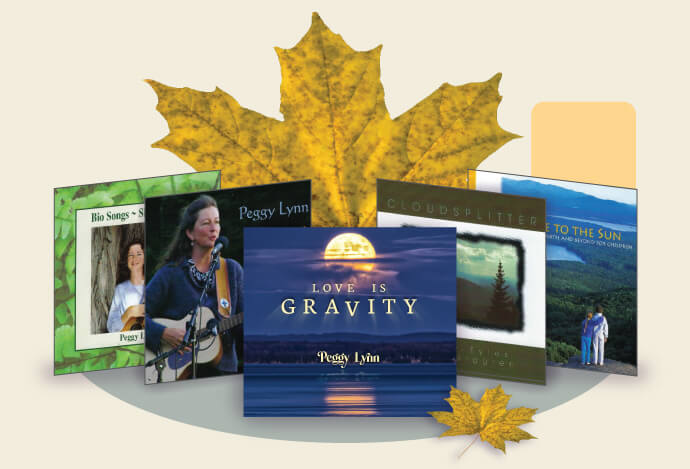 Peggy Lynn is a singer/songwriter who tells the stories of strong women. She loves to share music with children and families. Peggy and her husband, Dan Duggan, live in Lake Clear, in the Adirondack Mountains.